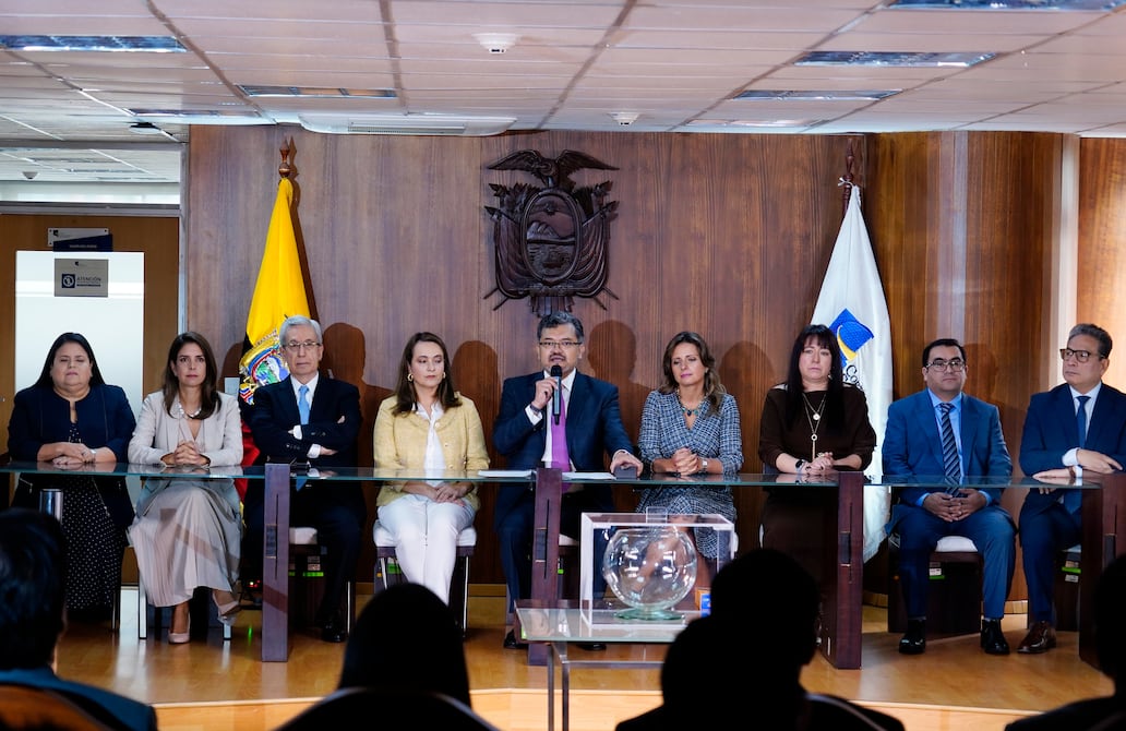 QUITO (11-03-2025). Sorteo para reemplazar a tres jueces de la Corte Constitucional, de acuerdo con el reglamento. Los jueces que dejan la corte son Enrique Herrería, Daniela Salazar y Carmen Corral.