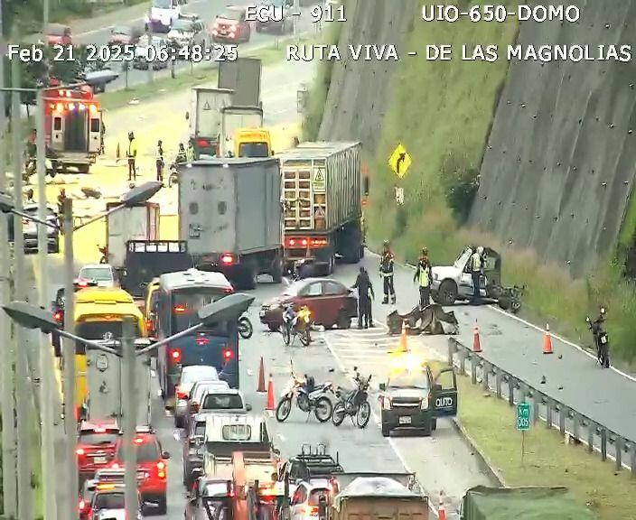 Caos vehicular en la Ruta Viva de Quito duró horas por siniestro múltiple